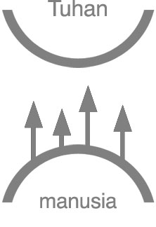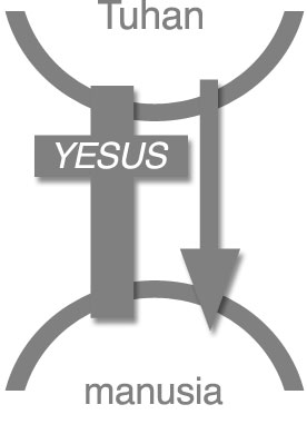 Ada jarak, satu jurang antara kita dan Tuhan. Anak panah menunjukkan usaha kita untuk mencapai Tuhan…melakukan kebaikan untuk orang lain, upacara agama, berusaha menjadi orang yang baik, dan sebagainya. Tetapi masalahnya ialah tidak ada satu pun usaha baik ini yang sebenarnya menutup dosa kita atau menghapuskannya.